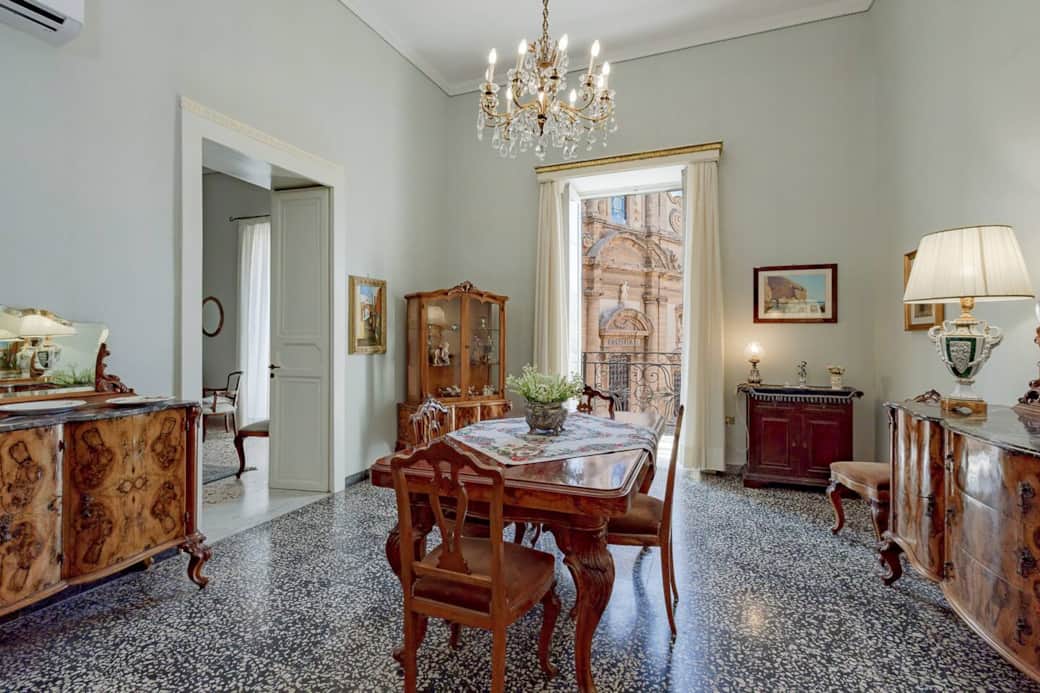 This 19th-century noble residence, directly overlooking Piazza Duomo, retains all the charm of its history: ceilings over 4 meters high, original architectural details, and restored period furniture that add character without weighing it down.