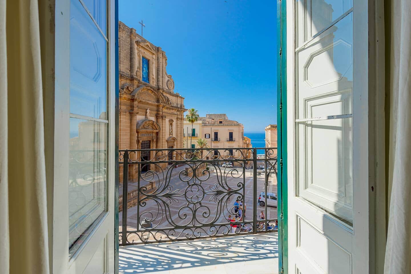 Each room features a private balcony offering unparalleled views of the Basilica of the Madonna del Soccorso and the sea of Sciacca.